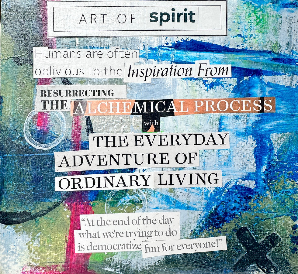 Her ability to view life as a puzzle cultivates her use of meditative doodling, collage, and found poetry as a way of expressing an open and collaborative conversation about the Experience of Being. The spirit of the conversation is to elicit a particular concept and feeling - quiet, contemplative, with an element of surprise. She draws upon her own word play techniques and rich symbolic language, translating it into and through the personal story. Her art is created with the playful and loving intention to articulate her own personal process and explore connections to a broader shared collective experience. Throughout her process, boundless inquiry is honored as a sacred impulse - a life force that excites us to ask, to explore, to open the doorway to awaken curiosity and wonder without conclusion. It is an openness that arises when the heart is no longer attached to a particular outcome and the uncertainty becomes not a threat but a homecoming. According to Grace, “the Magic is in the Medium. In the Source and the Sorcerer. In the material and the one who knows how to use the material.”